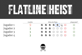 (English version below) ¡Hola, Flatliners! He creado una sencilla hoja de Google Sheets para que puedan compartir con sus jugadores, todos los contadores usados durante una partida de Flatline Heist...